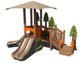 Designed for early childhood development, this playground includes toddler-friendly slides, low-height platforms, and easy-to-navigate climbers that help build confidence and coordination. Interactive play panels and ground-level activities encourage imaginative play, while the tree topper elements add a whimsical, nature-inspired theme. Together, these components create an engaging environment tailored to children ages 2–5, supporting both physical and cognitive growth.